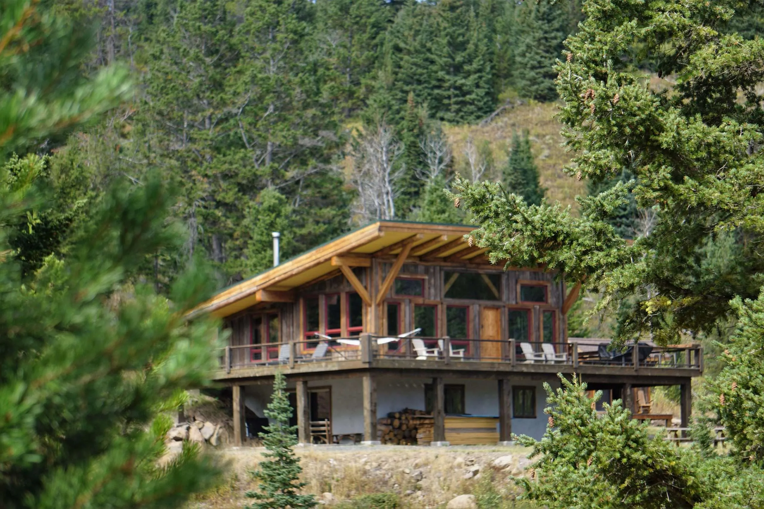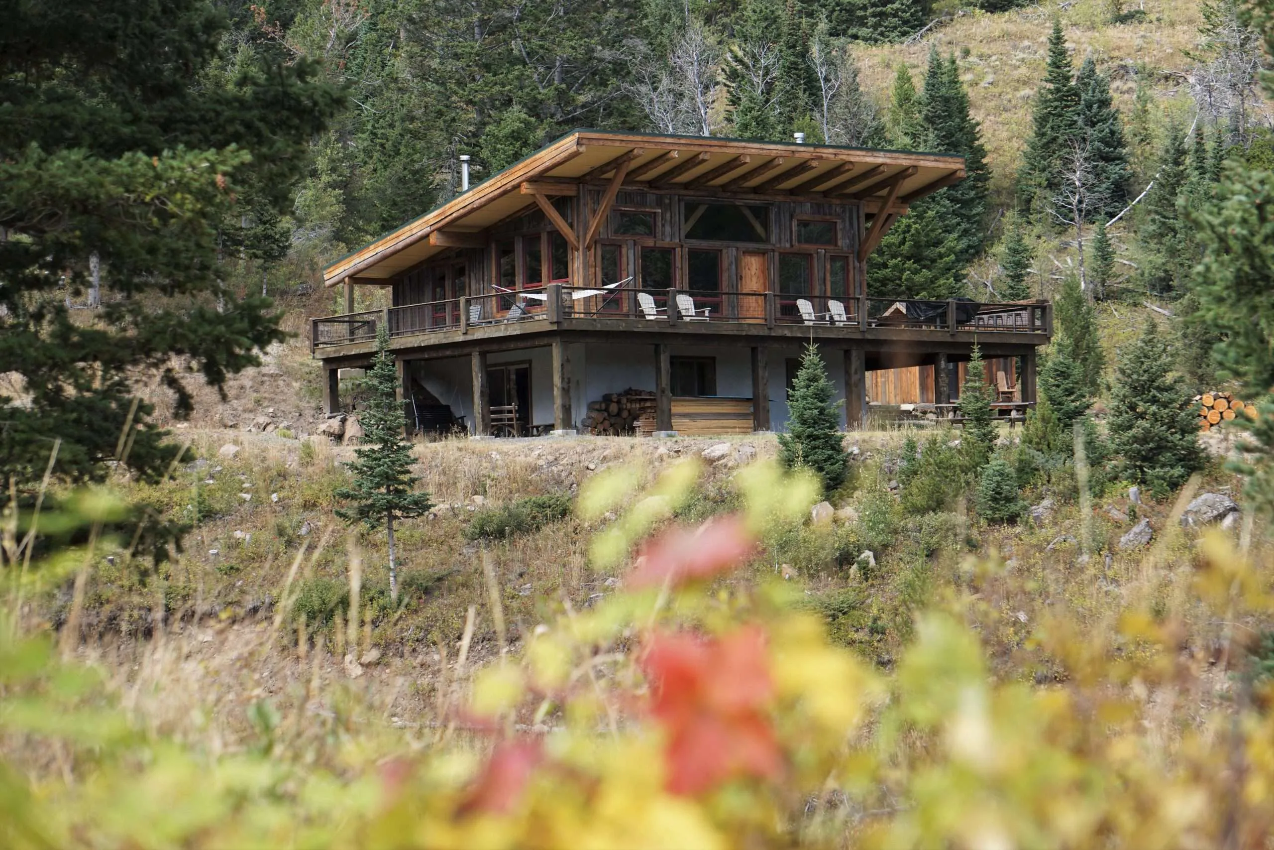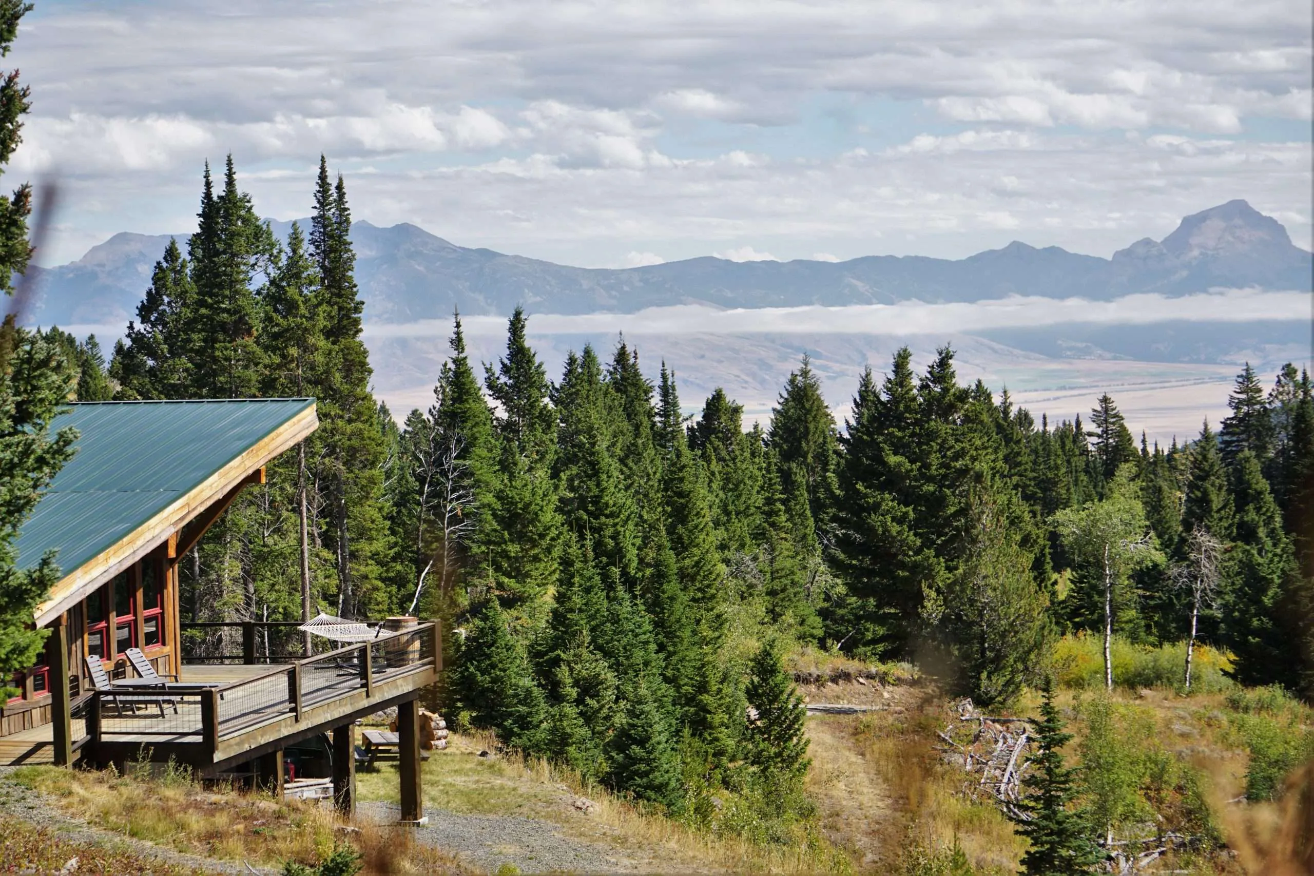 Mountain modern in design, the cabin was constructed using heavy beams and timbers features a large wraparound deck. A daylight walkout basement and tall ceilings provide great natural light with views of Sphinx Mountain framed in the windows. Bedrooms/bath are framed and partially walled, ready to install electricity. The plumbing is in, along with the stove, and the kitchen is ready for a propane refrigerator. There is a wood cook stove and a second stove for heat. Water includes spring water to the cabin, and there is a comfortable, separate composting latrine. In addition to the main cabin, there is a private guest cabin next to a spring in the fir grove. All of this is located 45 min SW of Ennis, 30 min to Madison River. Private road with locked gate for owners only. The road is not currently maintained in the winter but can be.