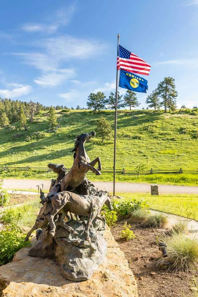 Two plush guest houses accommodate visitors in splendid comfort. Sculptures and art place human touch-points amid the natural majesty of Horsethief Basin Ranch.