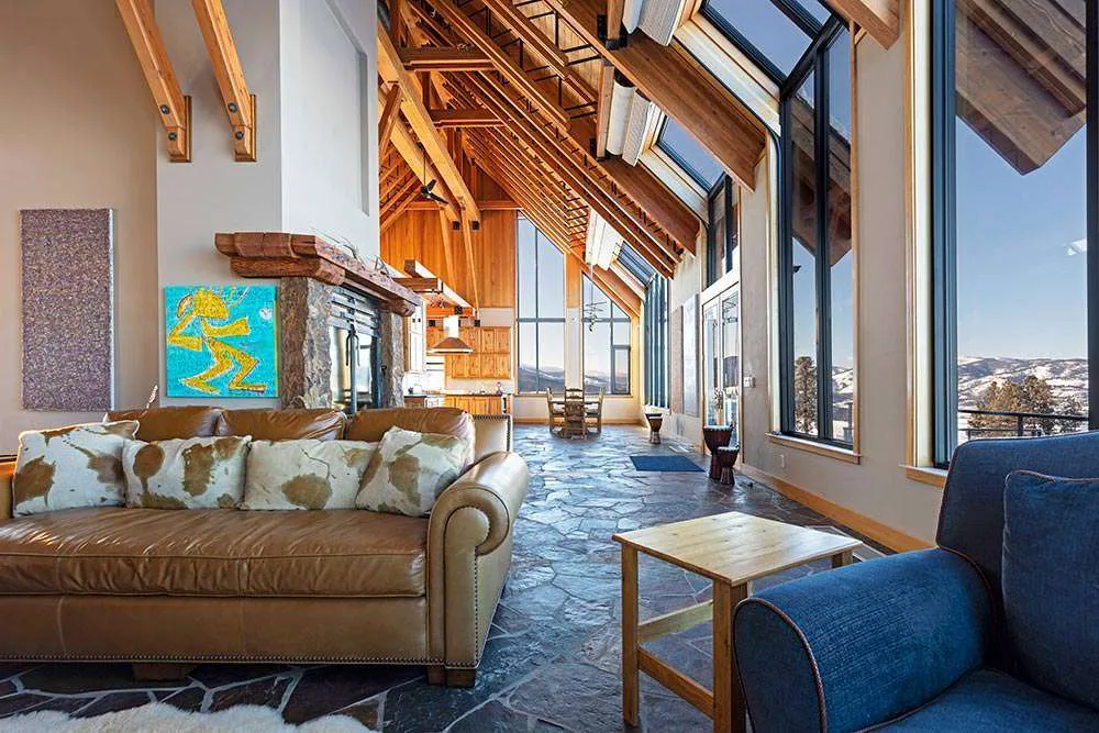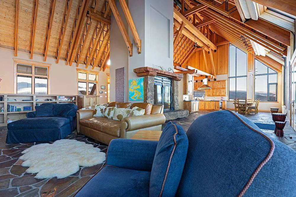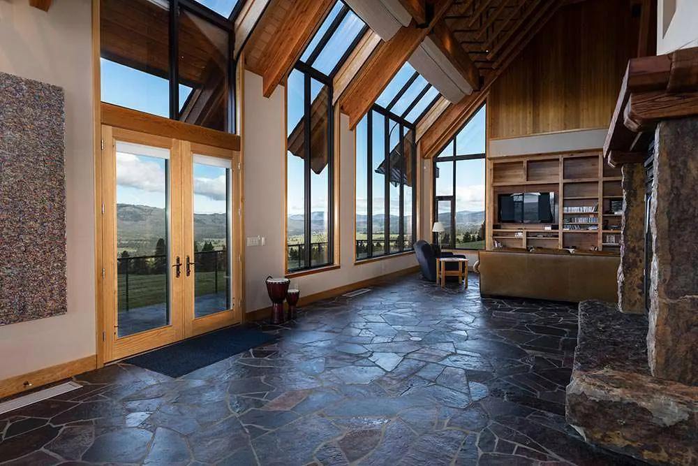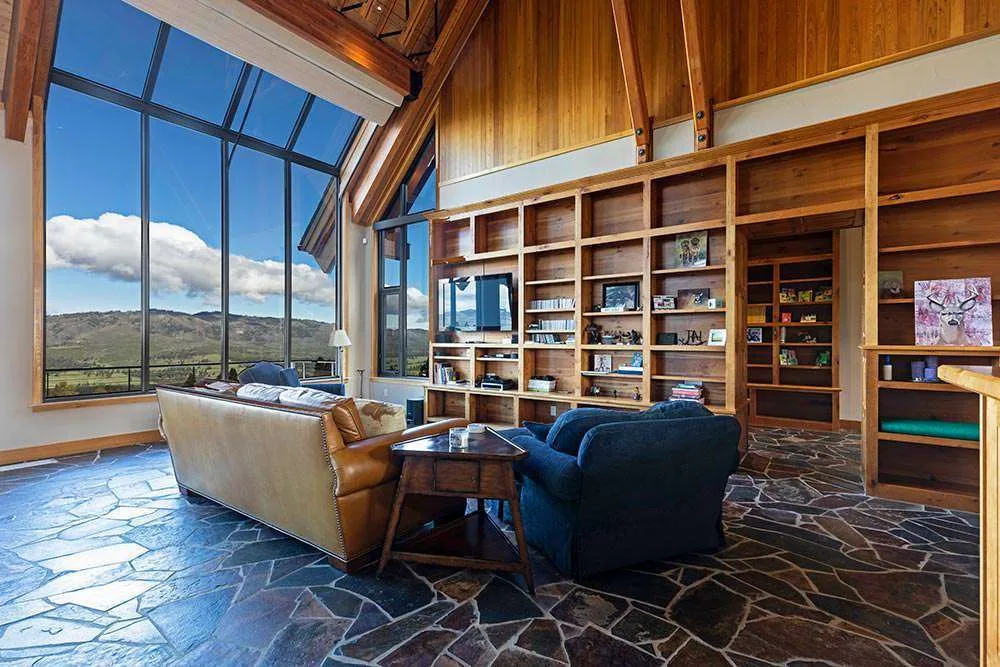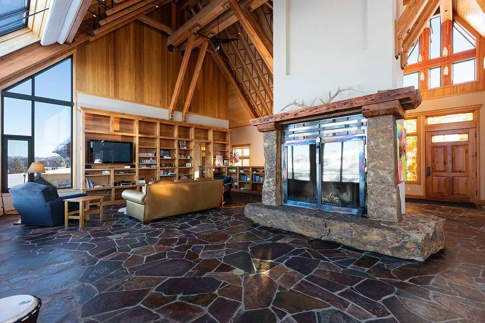 A grand stone Rumsford-style fireplace anchors the cathedral height great room, complimented by gorgeous stone and exquisite woodwork throughout. The main level also features a master suite, powder room and library.