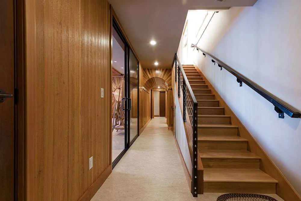 The home features a master bedroom suite and an additional guest bedroom for family and friends. A full finished walk out daylight level features a recreation room with a custom wall with exotic wood inlay from the Gibson guitar factory.