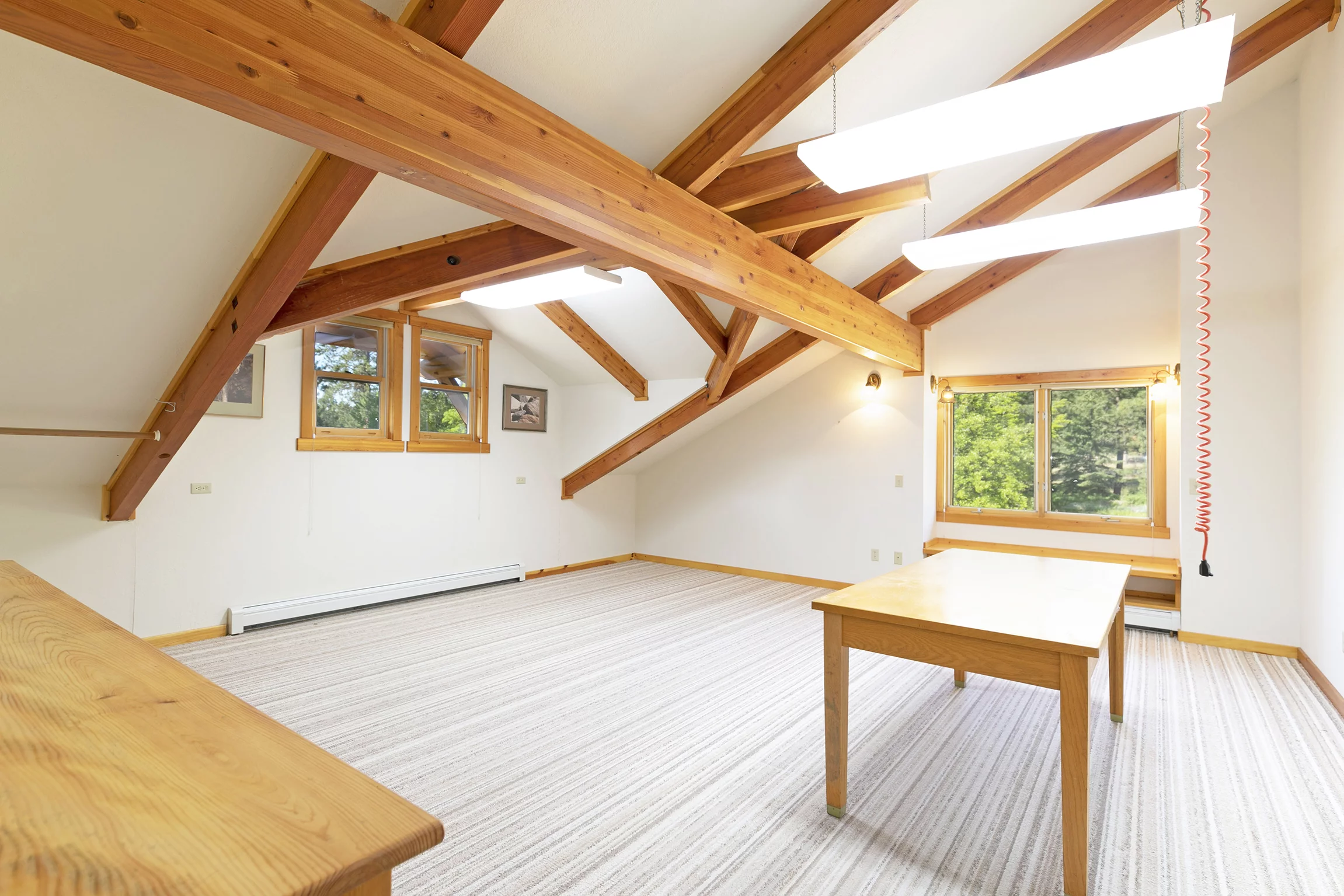 Heading upstairs, the natural light continues to brighten the main hallway, which leads to two large bedrooms, a full bathroom, a huge craft/playroom with overhead task lighting, and multiple storage rooms.