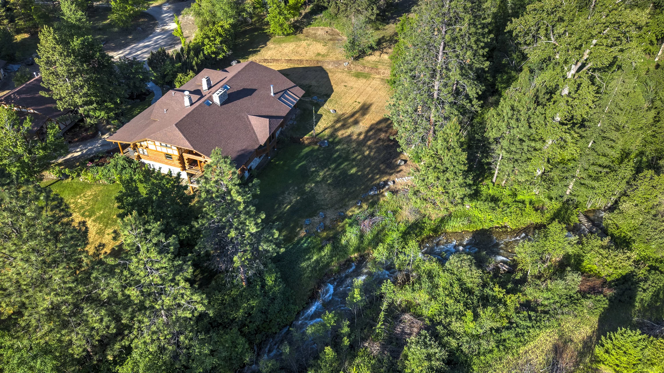 Spring Mountain Sanctuary, is ideally located in the northern reaches of Montana’s Bitterroot Valley. Minutes from the famed Bitterroot River and National Forest, Spring Mountain Sanctuary is a legacy property featuring 84+ acres of classic pine trees and grassy forest meadows, with Tie Chute Creek cascading next to the custom built 6800 sq ft impressive Montana log home. Natural light flows into the home, creating an inviting space for entertaining and family gatherings. Valuable water rights allow for a lush landscape, private serene environment where it’s easy to achieve a quality outdoor Montana lifestyle.