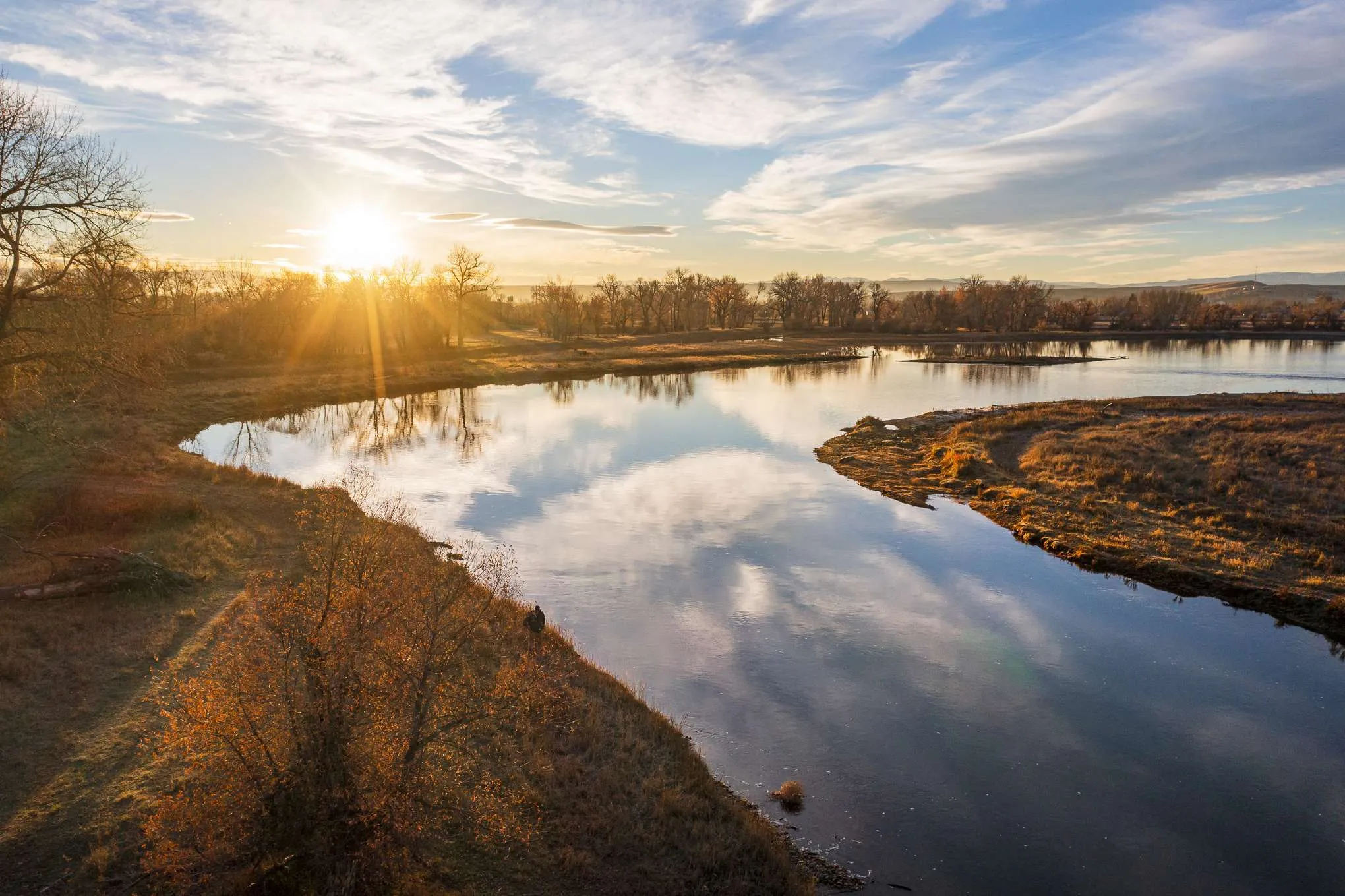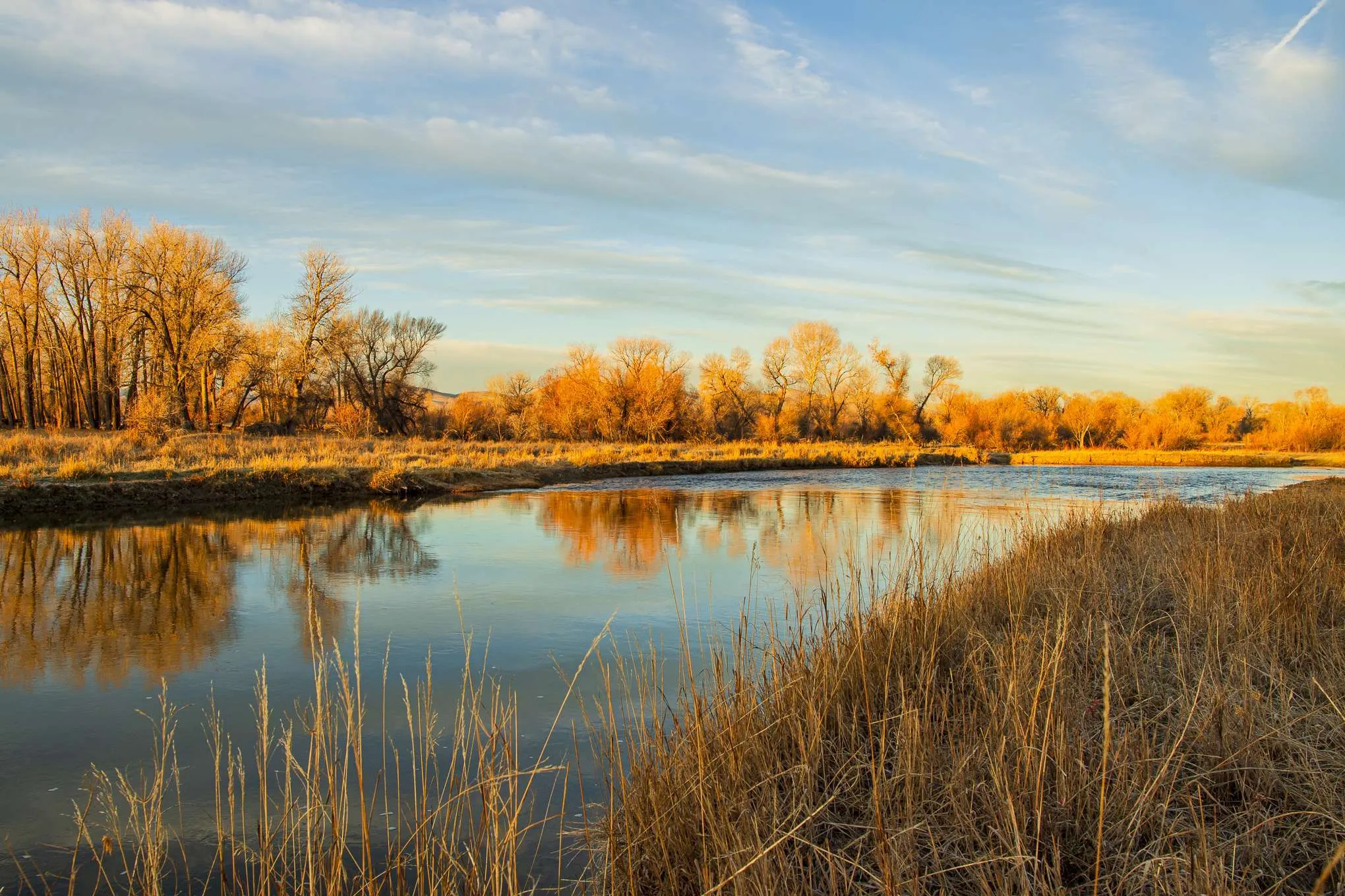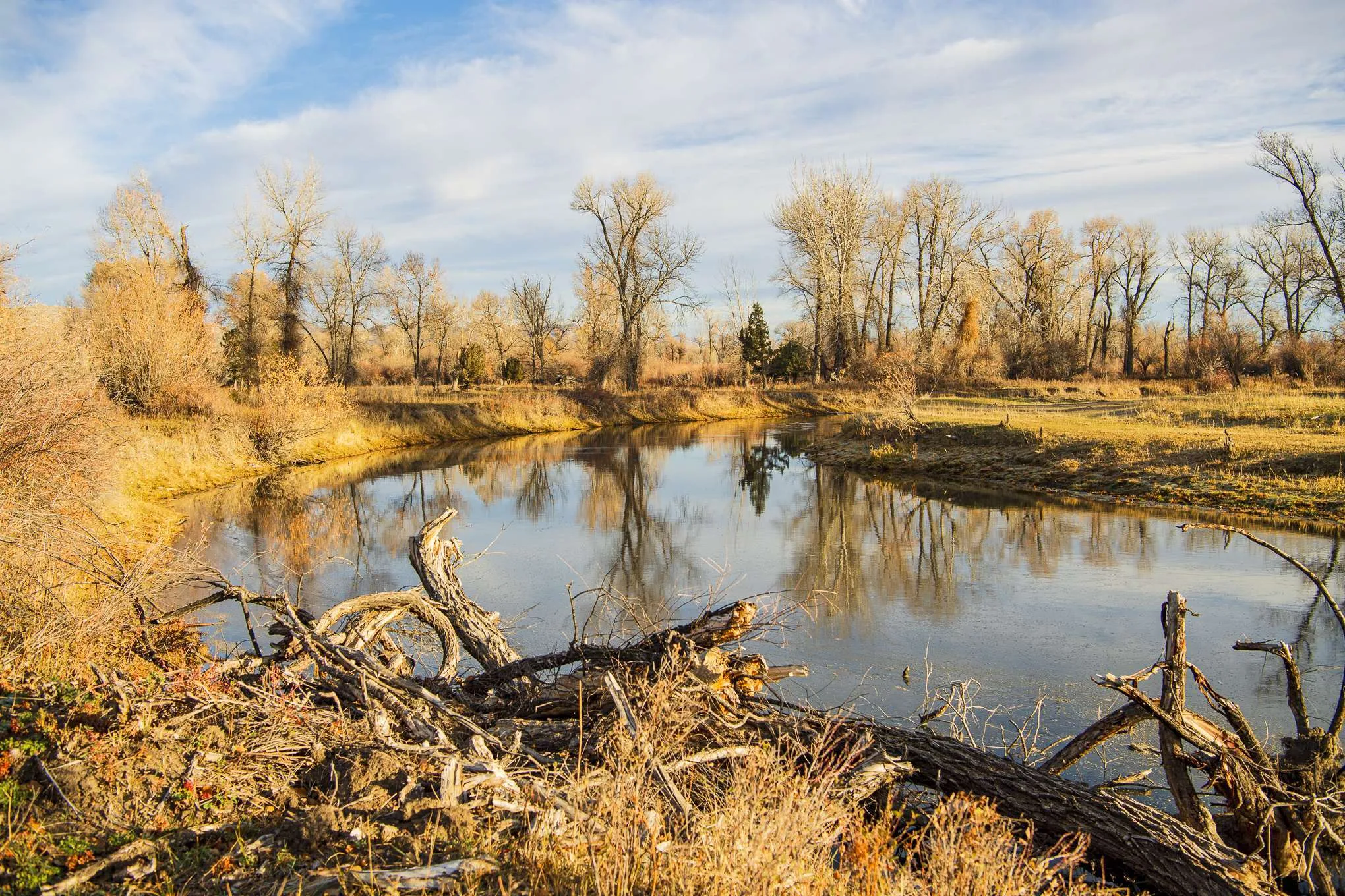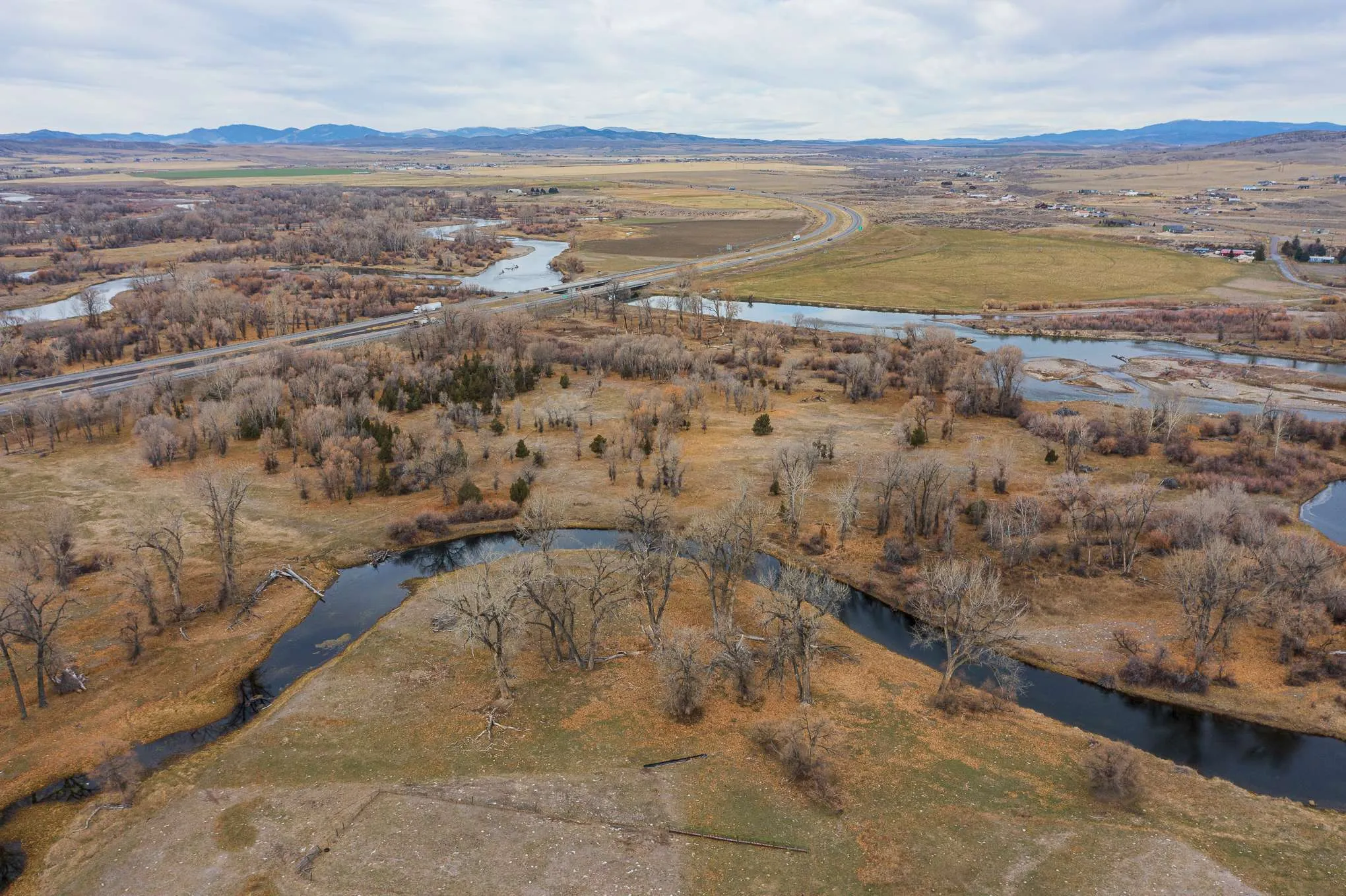 Three Forks River Ranch combines outstanding fishing and hunting opportunities with two revenue streams and a strong developmental component, all within easy walking distance to Three Forks, MT. Ideally located in the path of growth along I-90, this 373± acres offers nearly a mile of both sides of the Jefferson River along with extensive braids and ponds. Under a forest of mature cottonwood trees, moose, white-tailed deer, upland birds, waterfowl and turkey all reside in the abundant habitat afforded by these lush riparian areas. If you’re into fly fishing, the opportunities are endless to wrangle a big Brown Trout from the riffles or pools as the Jefferson rolls on by. As if that weren’t enough, the ranch has 2 pivots irrigating a total of 65± acres that can provide a nice return as a lease, or provide much needed irrigated ground for crop production. A second source of revenue from the ranch is provided by the ability to carry approximately 70± cattle pairs seasonally.