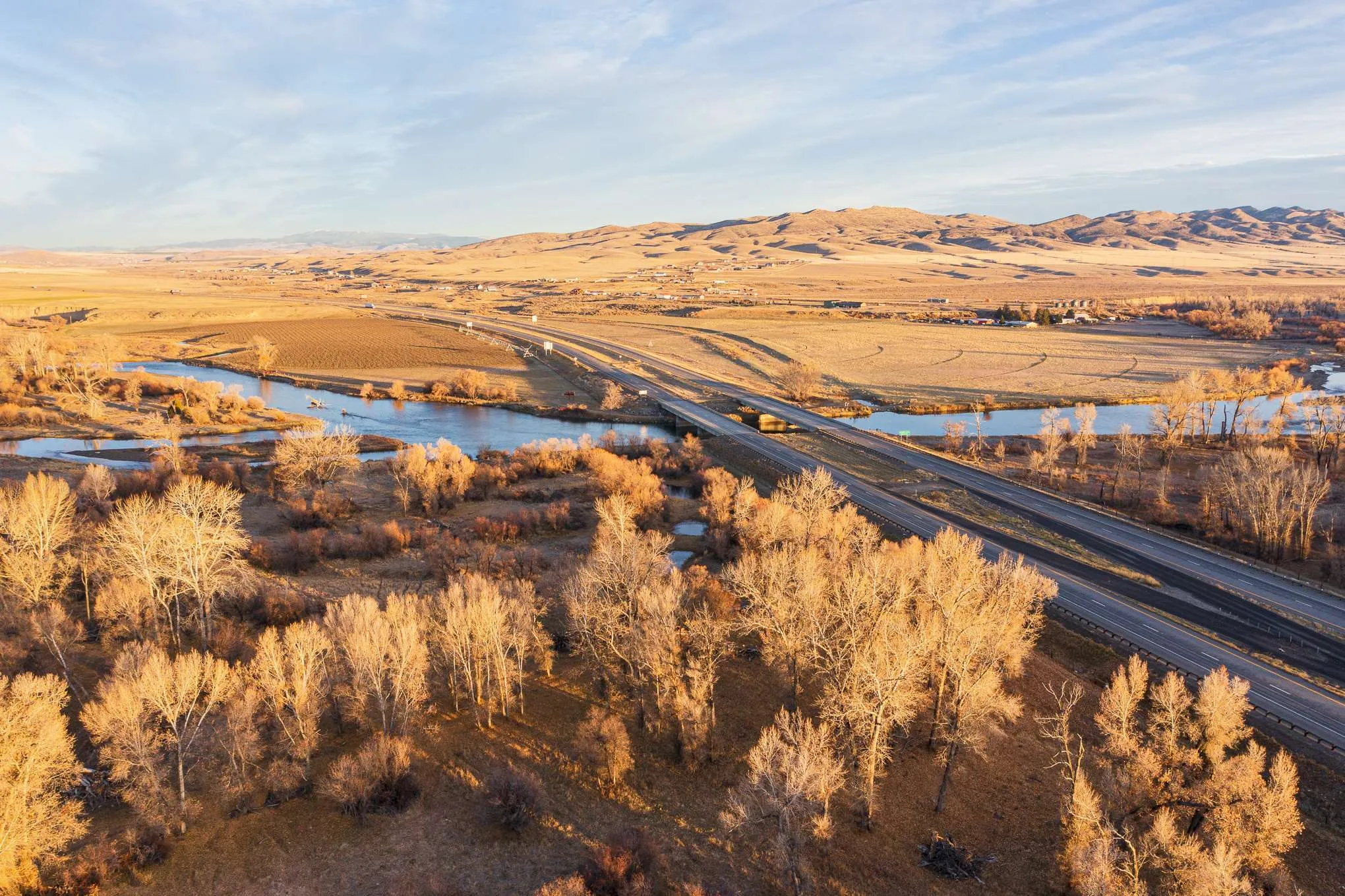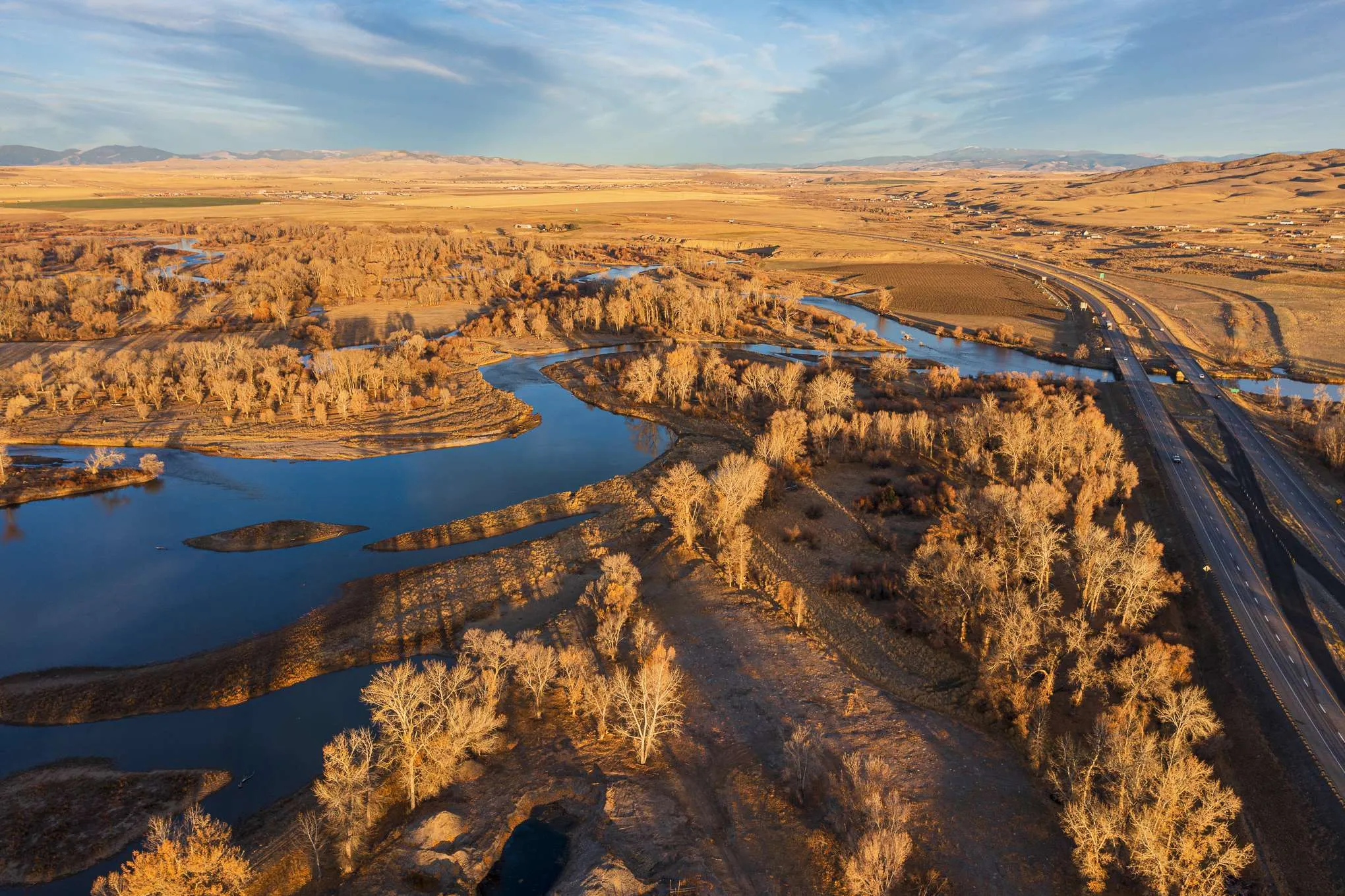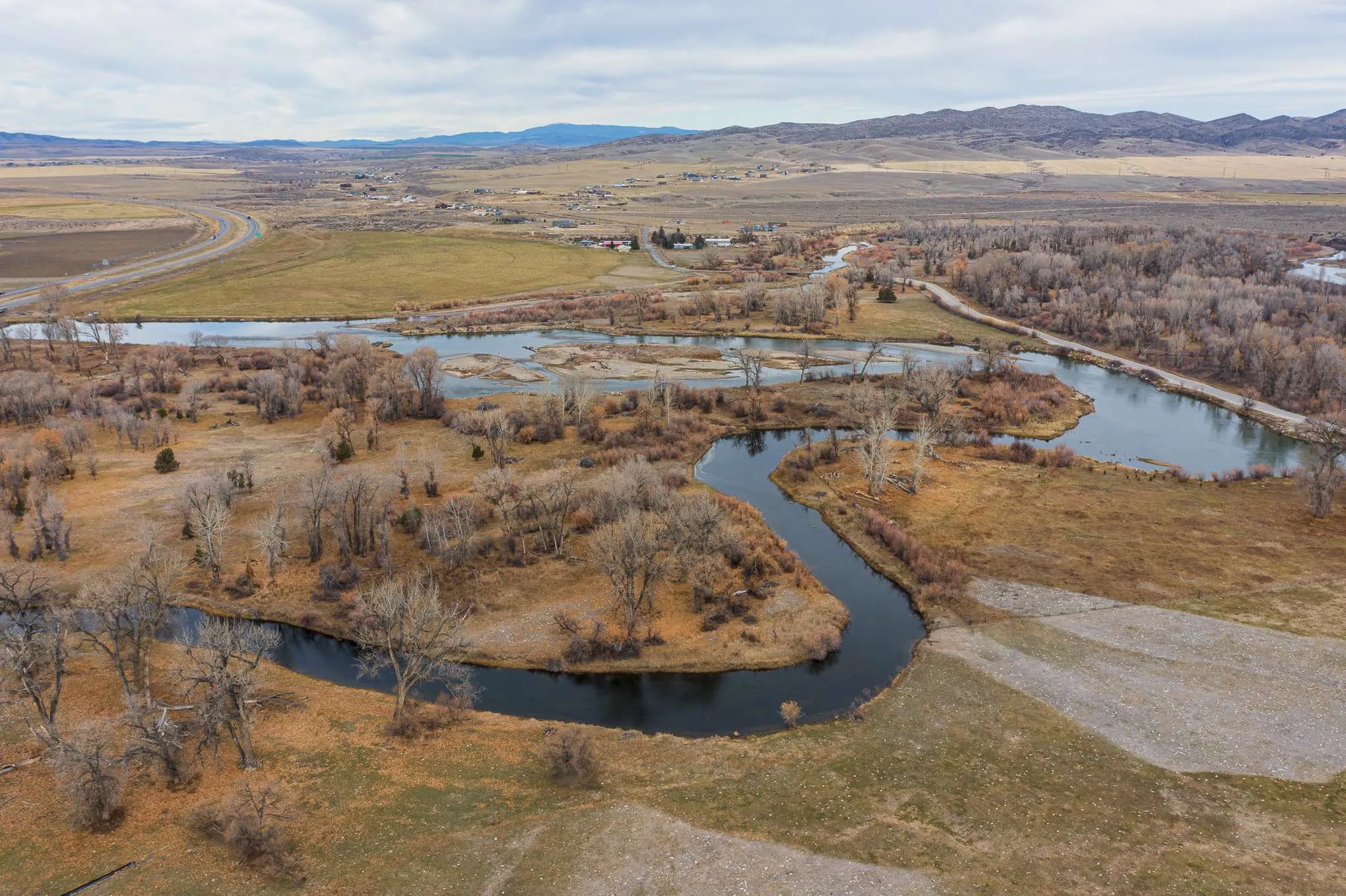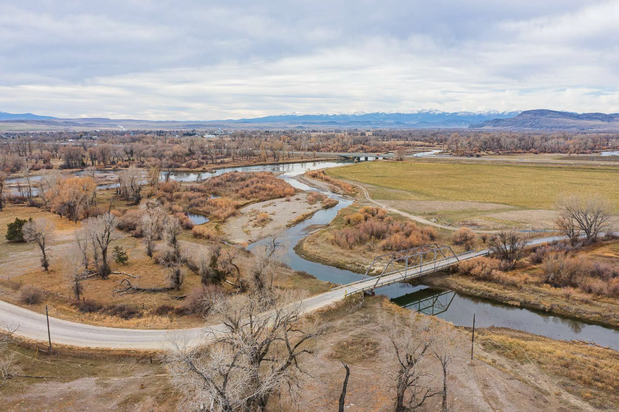 The Three Forks River Ranch is located just north and adjacent to the charming western town of Three Forks, Montana. In fact, its southern access point gives direct access to Main Street just a short walk into town. Bisected by I-90 and visible from the highway, it has excellent year-round access from the north on county paved Old Town Rd, or the south side of the ranch directly onto Main Street, a.k.a. Hwy 2. From the ranch, Bozeman is a short 30 minute drive east where you will find most anything you need. From retail box stores like Costco and Walmart to the local shops and eateries along the main drag, Bozeman has it. For easy air travel, Bozeman Yellowstone International Airport (BZN) has flights daily from major airlines such as American, Delta, Southwest and United.