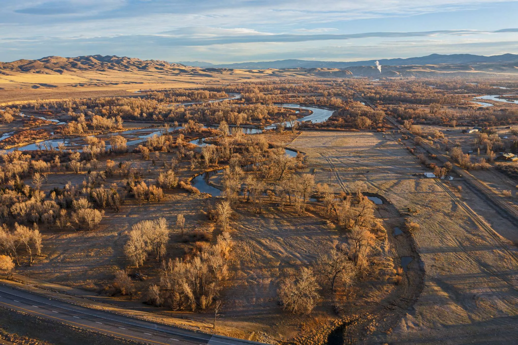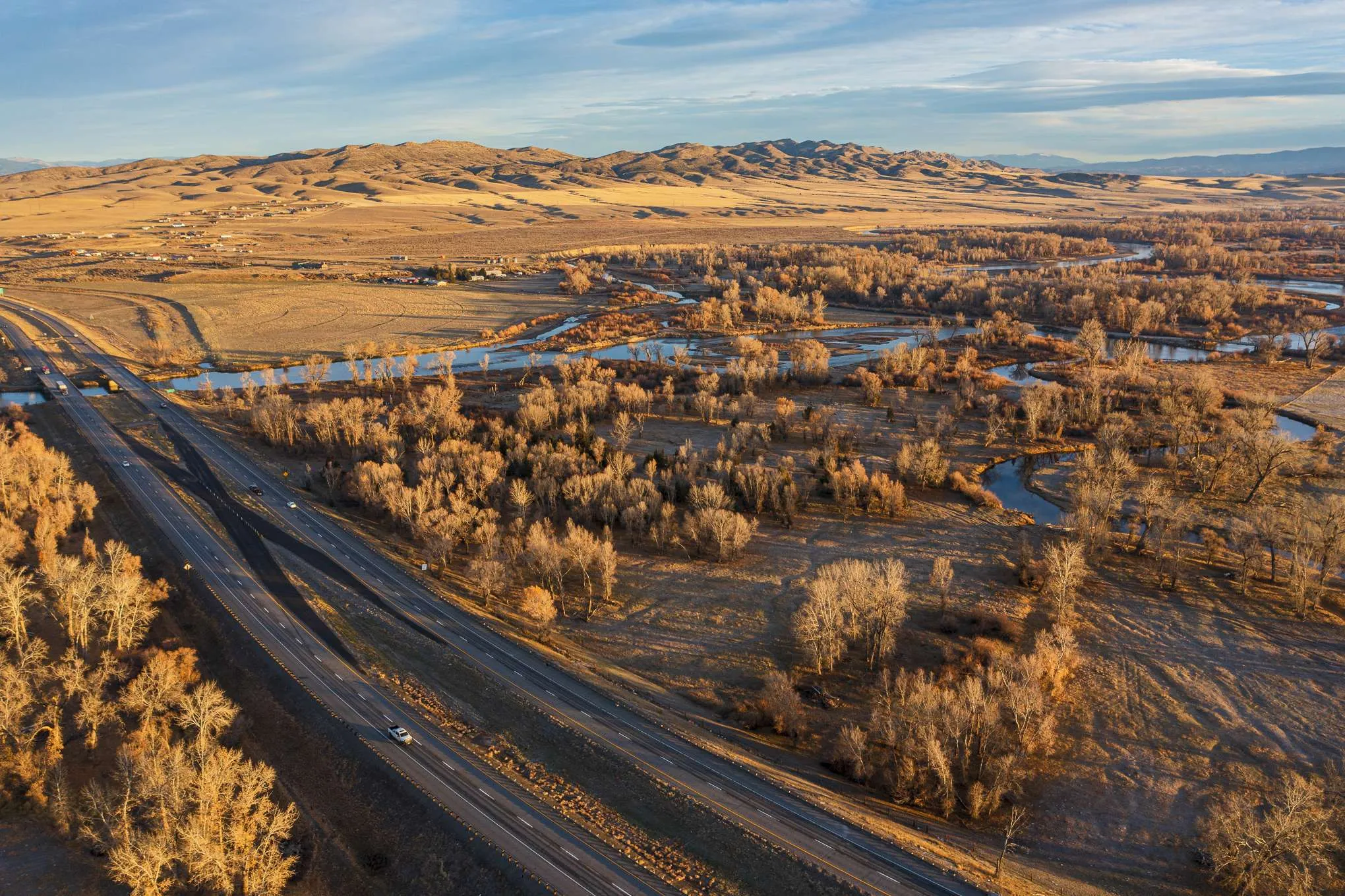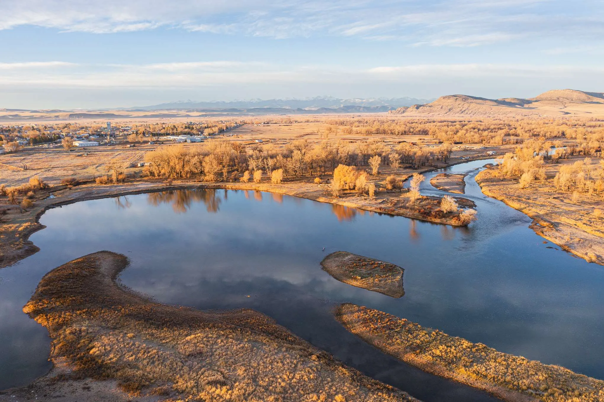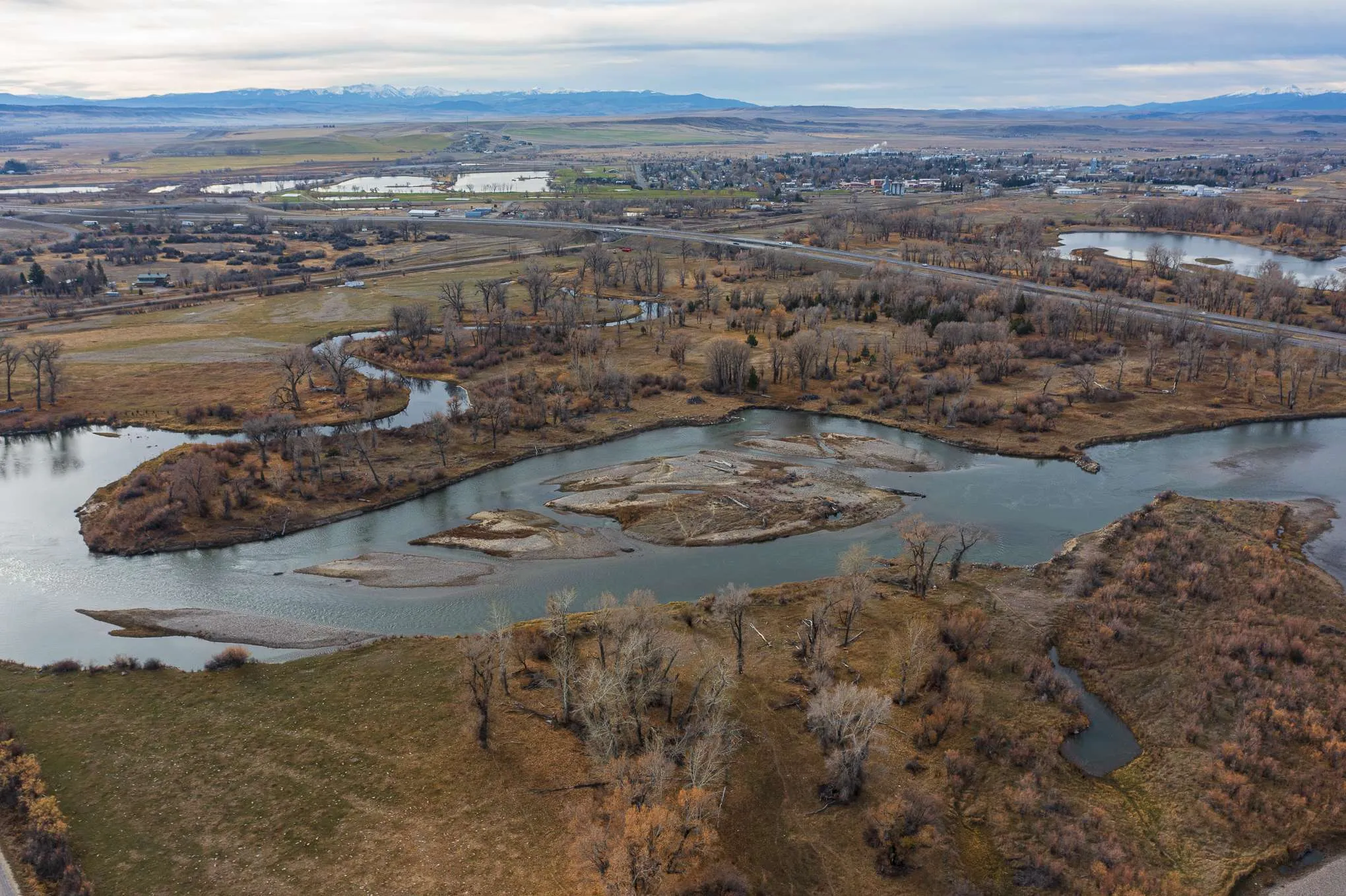 The Three Forks River Ranch is located just north and adjacent to the charming western town of Three Forks, Montana. In fact, its southern access point gives direct access to Main Street just a short walk into town. Bisected by I-90 and visible from the highway, it has excellent year-round access from the north on county paved Old Town Rd, or the south side of the ranch directly onto Main Street, a.k.a. Hwy 2. From the ranch, Bozeman is a short 30 minute drive east where you will find most anything you need. From retail box stores like Costco and Walmart to the local shops and eateries along the main drag, Bozeman has it. For easy air travel, Bozeman Yellowstone International Airport (BZN) has flights daily from major airlines such as American, Delta, Southwest and United.