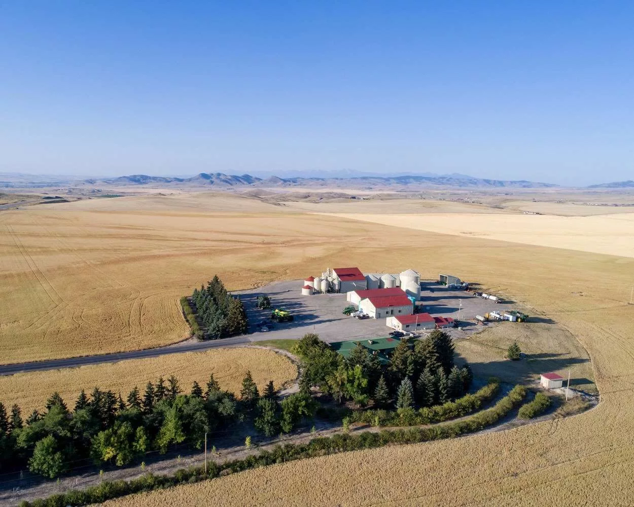 The operations encompass almost 10,000 acres of the most productive soil in Montana. At 5,000 feet above sea level, it is also the highest elevation grain is grown in North America. The low rainfall, high elevation and cool nights on the farm result in some of the highest quality grains in the world. Exceptionally well managed and sized for efficiency and utilizes the most advanced machinery and farming techniques. Fields are sized specifically to accommodate machinery. Not a single fence exists on the farm.