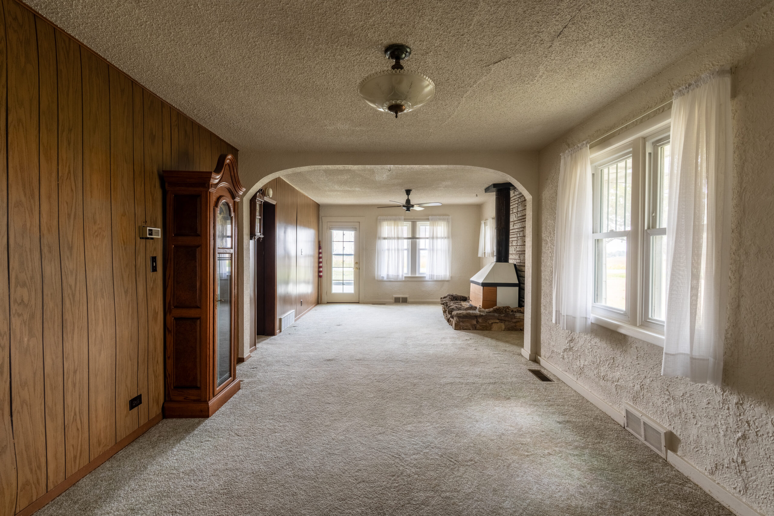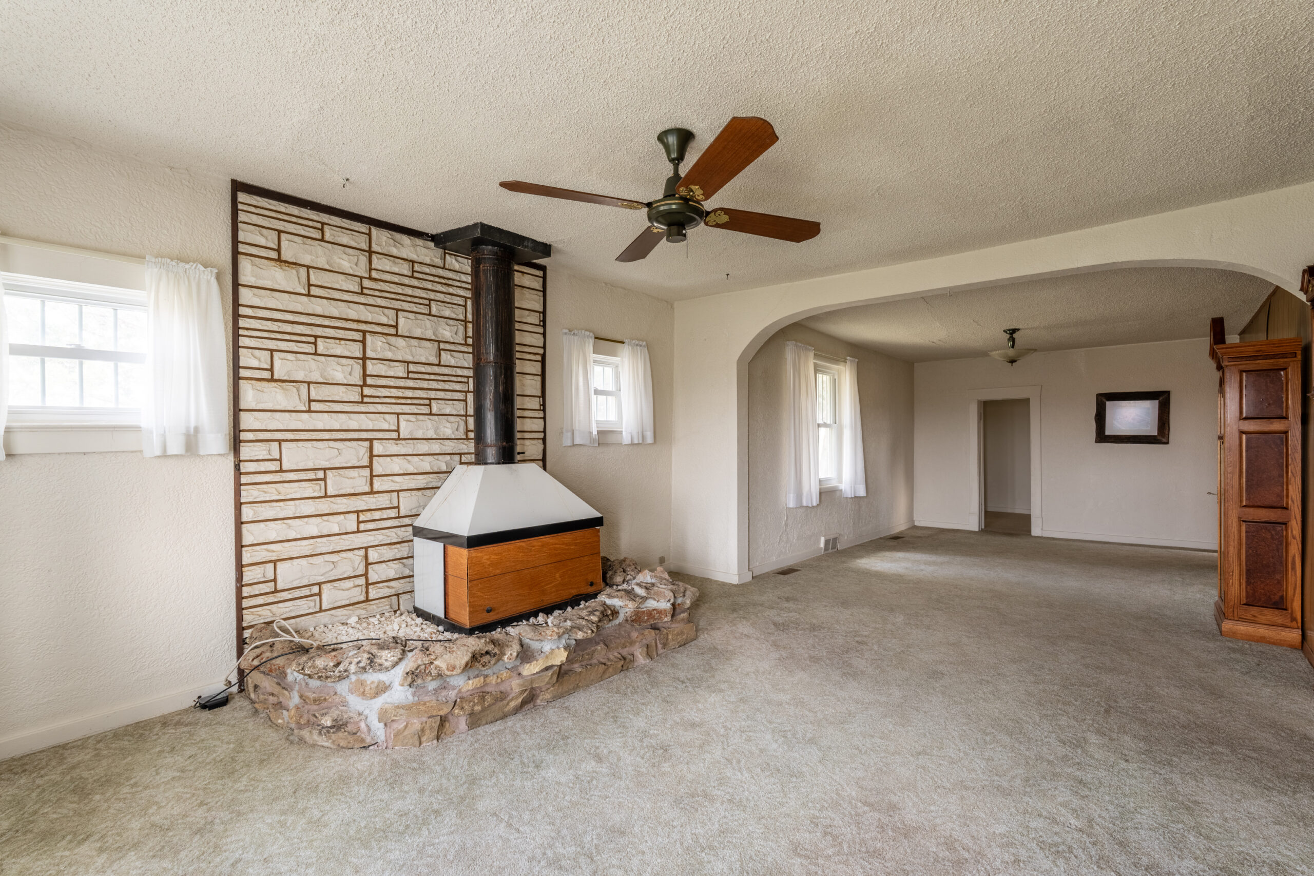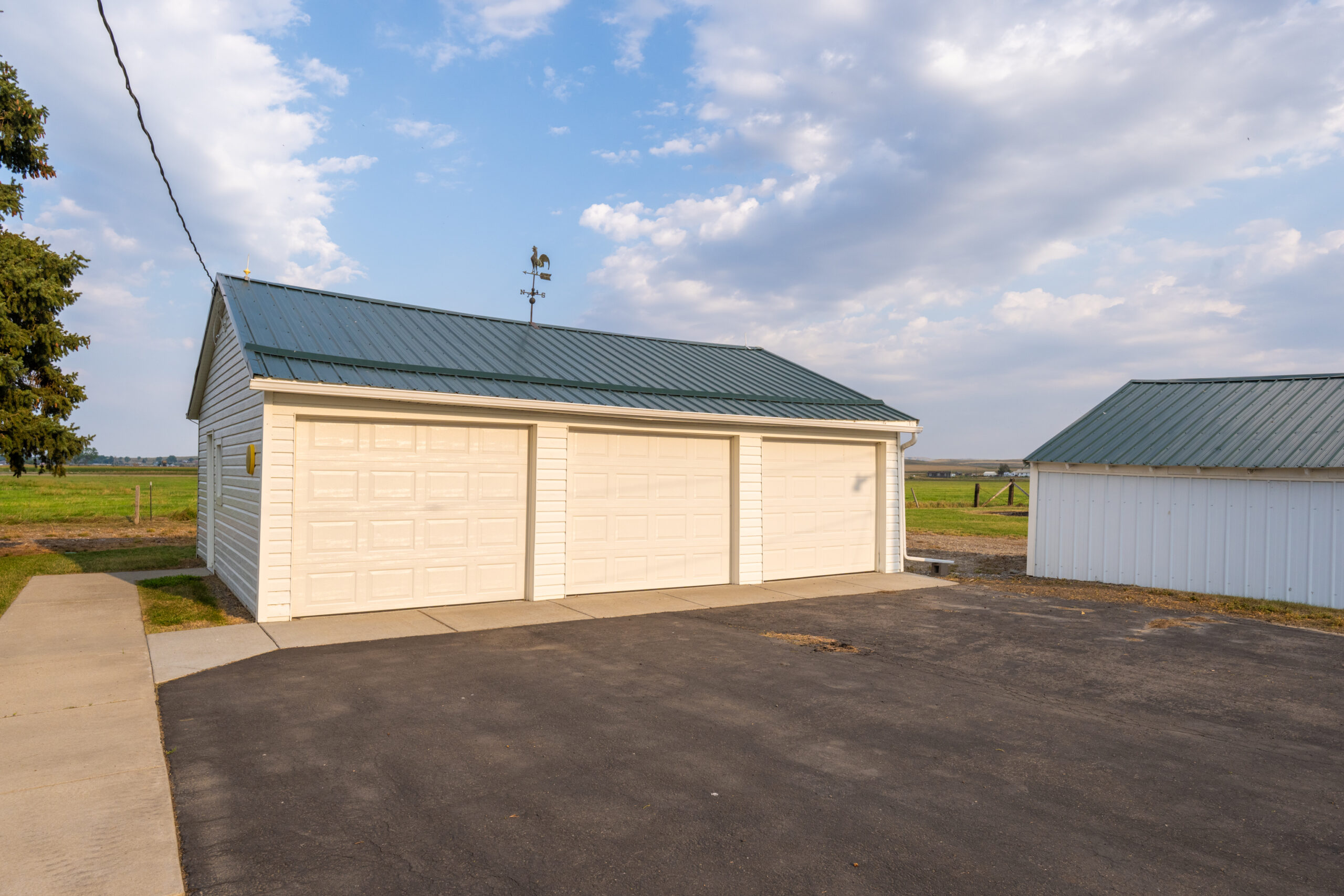 The property includes a 1,536 ± sq ft single-family residence constructed circa 1964, of wood-frame construction with composition roofing and a full basement. The home is of average quality and condition for the area, with 3 bedrooms and 2 bathrooms noted on record. Supporting improvements include a detached two-car garage (~720 sq ft), a metal utility building (~1,200 sq ft) suitable for machinery or shop use, and a livestock/hay structure (~960 sq ft) consistent with small-scale agricultural operations. Ancillary features appear to include domestic well and septic, gravel drive, and mature shelterbelt landscaping. Overall, the site shows typical rural residential use integrated with small-acreage farmstead infrastructure, reflecting functional utility for both home and light ag purposes.